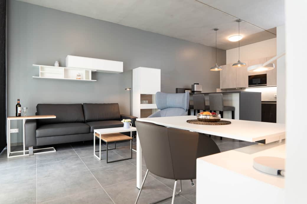 Unsere stilvoll eingerichteten Apartments mit hochwertigen Designermöbeln und kompletter Ausstattung bieten Ihnen großzügigen Komfort zu fairen Preisen – ideal für längere Aufenthalte oder als attraktive Hotelalternative.